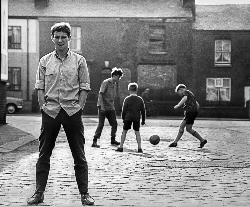 Blackpool and England footballer Alan Ball, part of the 1966 England squad, pictured in the street where his parents live in Walkden, Lancashire, 1st May 1966.