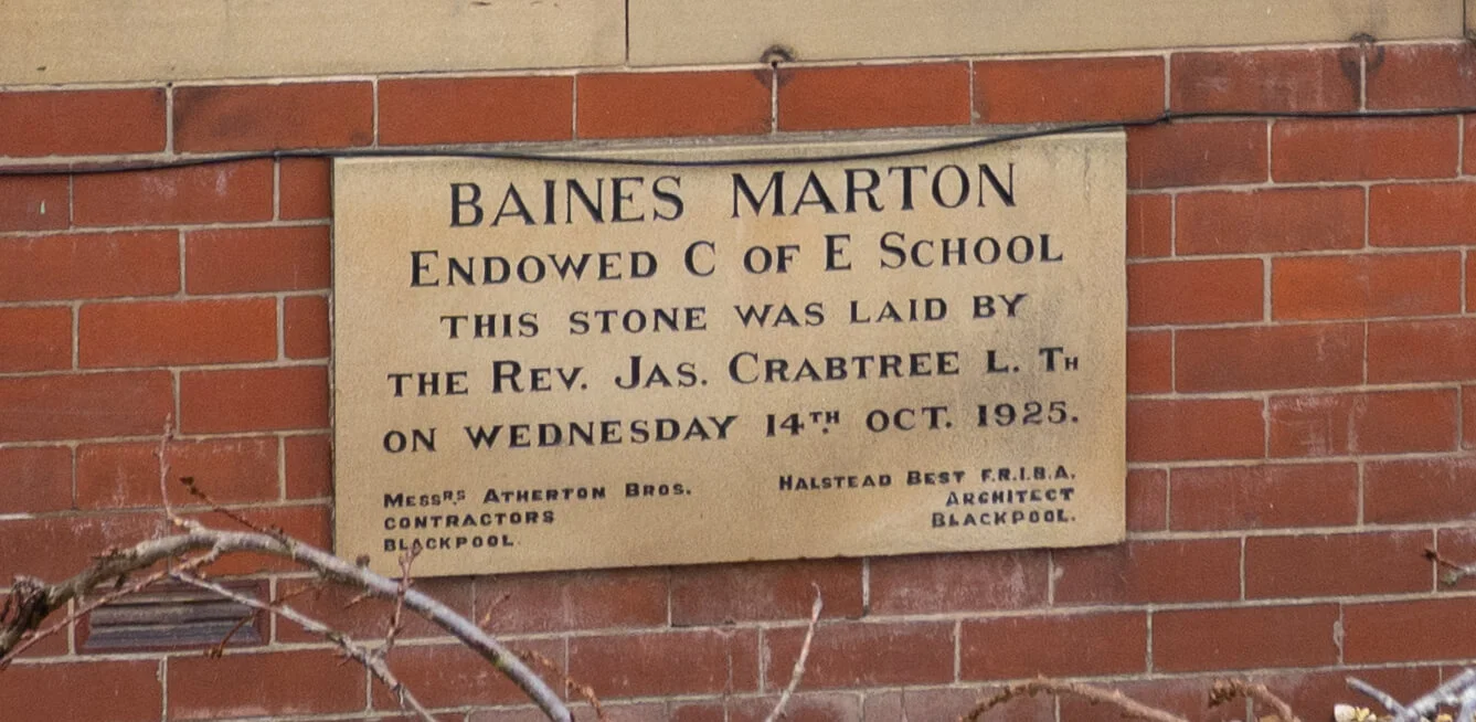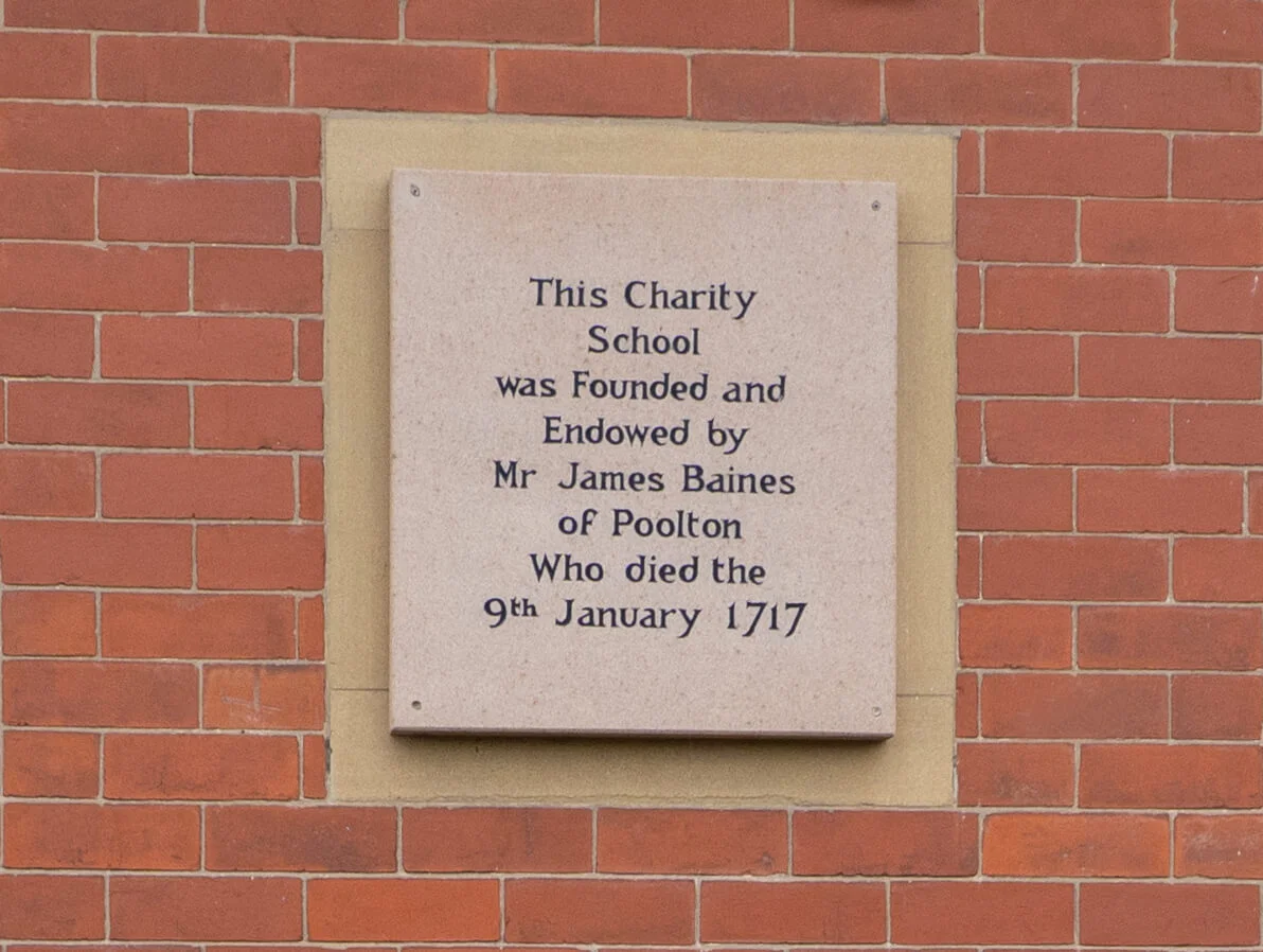 Baines Endowed Primary School in Marton was founded through the will of James Baines in 1717. It was one of three schools set up in Baines’ will, the others being at Poulton-Le-Fylde and Thornton, teaching around 100 pupils without charging fees. Baines will also provided payments to the poor of the area and apprenticeships. Baines can claim that three of its students appear on Blackpool Timeline – Joe-Warren Plant, Susan Varley and Gerry Wolstenholme.