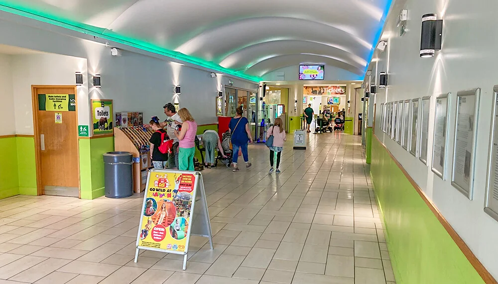 This blue plaque is hanging on the left wall at the zoo’s entrance. © Deeper Blue Marketing & Design Ltd