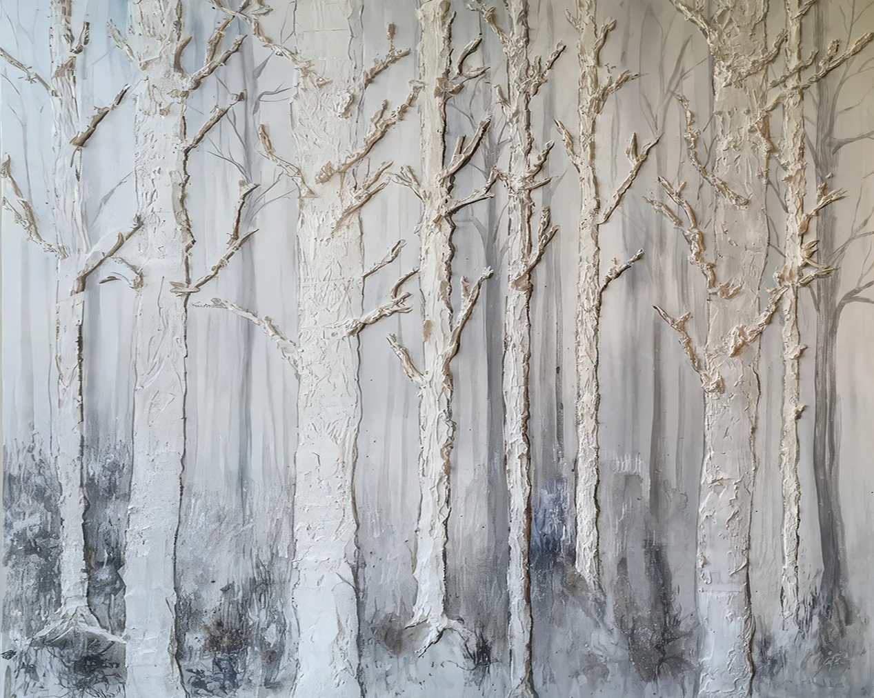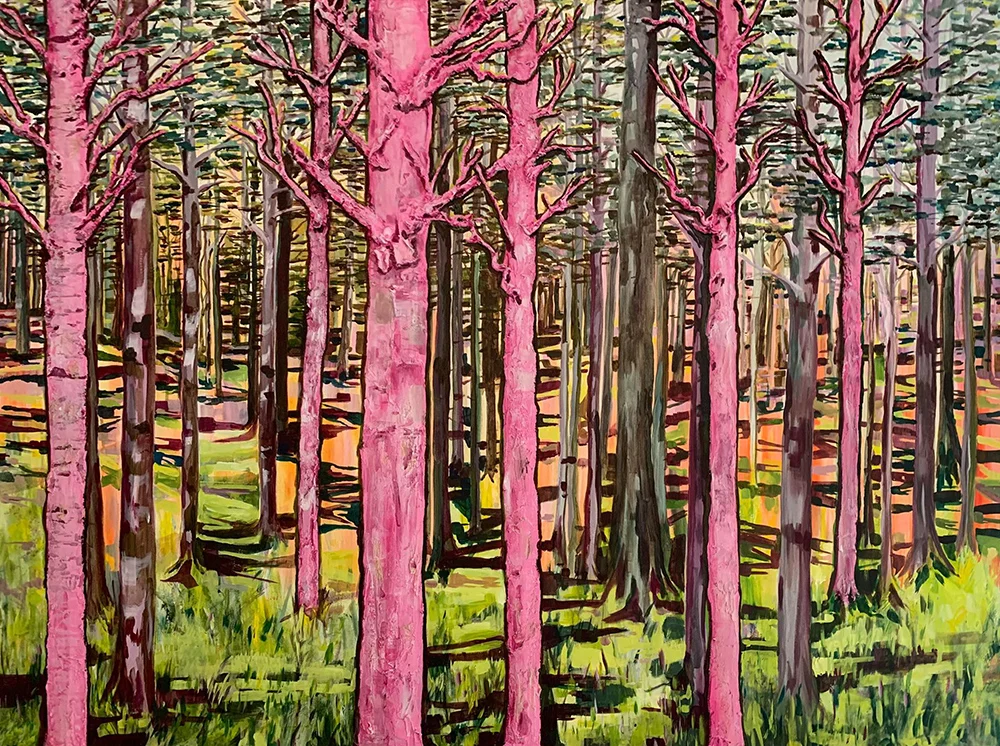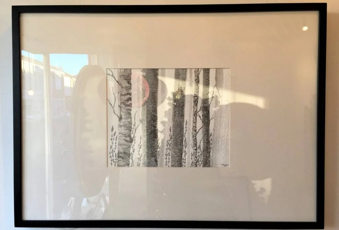 At another exhibition fifteen years later, on 11 December 2017, Hudders had arrived at a very different phase of her artistic journey — but one that demonstrated the same instinct for exploration. Working at Blackpool’s Blott Studio, she presented a new body of work titled ‘Bones of the Earth’ during the studio’s Christmas Art Emporium. This series of drawings and paintings was inspired by a visit to the Dee Valley in Scotland, a landscape shaped by ancient Caledonian pine forests and silvery birch groves. Hudders found herself captivated by the markings, scars and tonal shifts in the bark of these trees, reading in them a kind of natural script shaped by time, weather and growth. In ‘Bones of the Earth’ series, she translated the tactile qualities of the bark into both drawn and painted compositions. Her work conveyed depth and texture with sensitivity, reflecting not only the material beauty of the forest but also a deeper sense of endurance and history within the natural landscape. The series marked a shift toward quieter, more contemplative themes, yet retained her signature attention to surface, structure and expressive mark-making.
