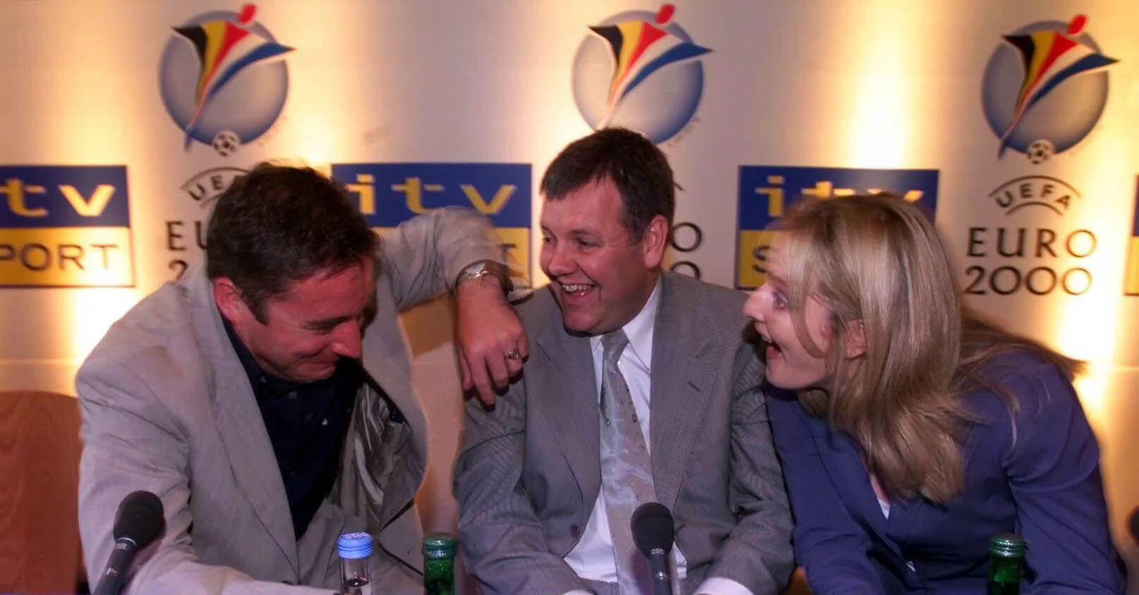 Commentators Ally McCoist, left, and Clive Tyldesley, with presenter Gabby Yorath, ITV Sport’s new broadcasting team for the Euro 2000 football Championship that was unveiled in London.