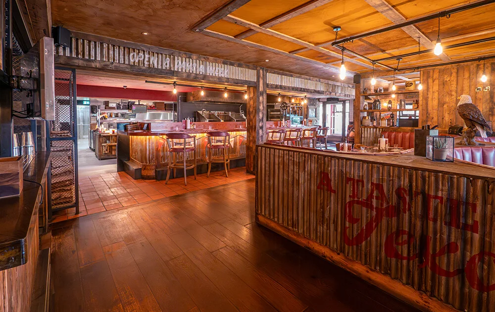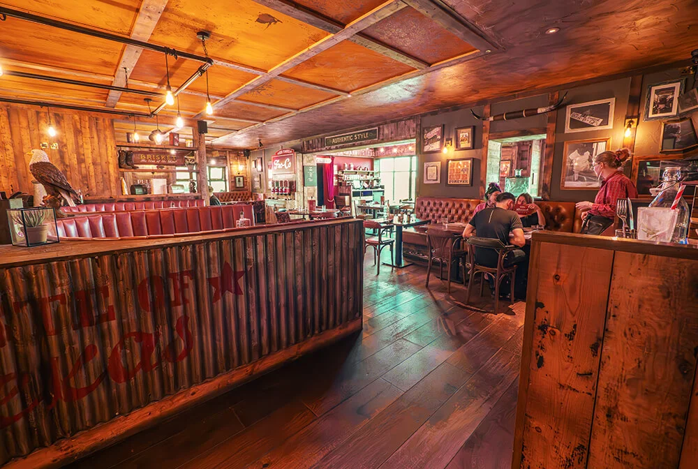 The design of the Thornton-Cleveleys restaurant is styled to capture the atmosphere of a Deep South smokehouse. Interiors feature open kitchens, a bar with American-inspired décor and family-friendly dining areas. Outdoor seating and landscaped spaces add to its appeal as a local meeting place.