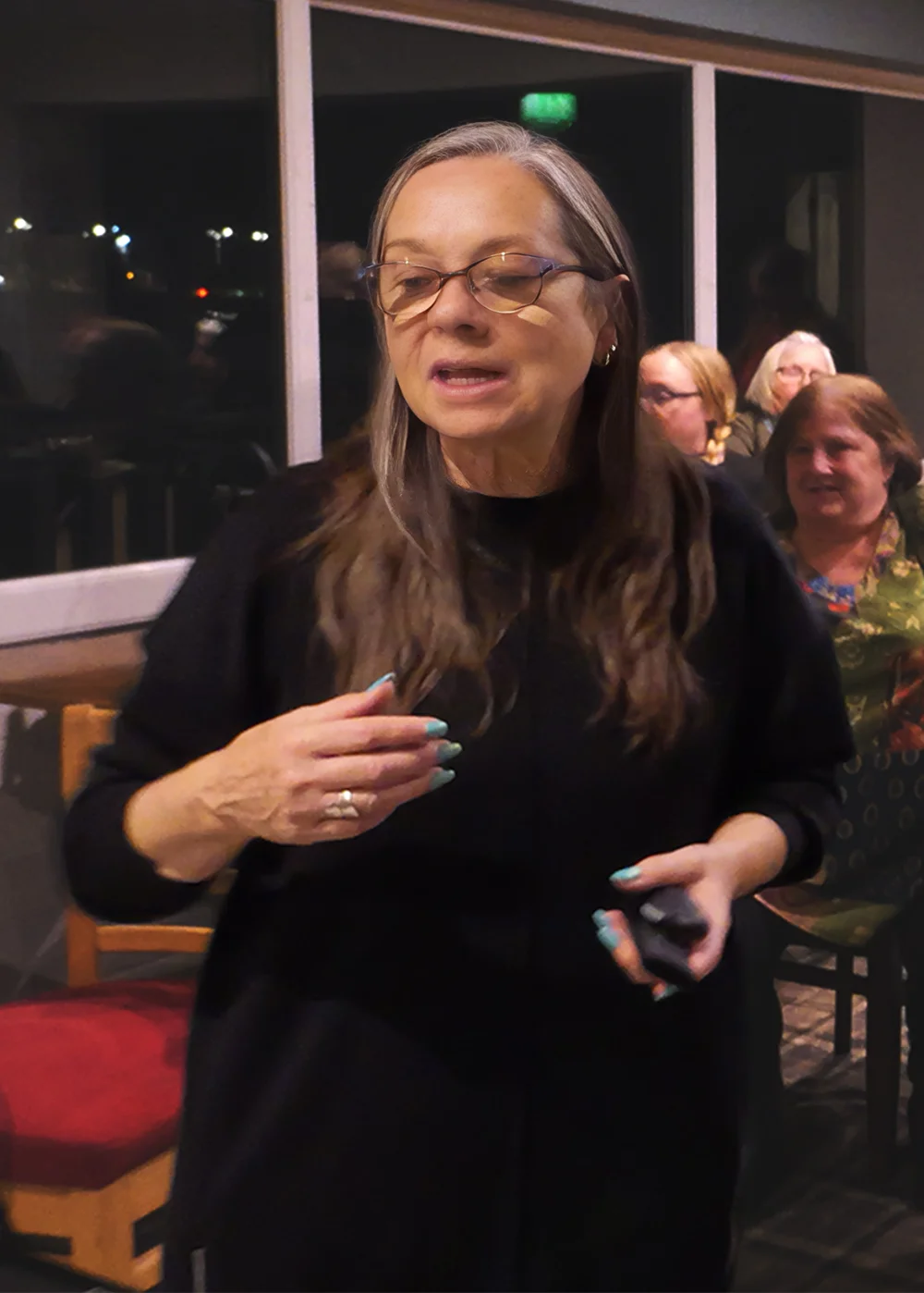 Here she is after giving a presentation for the Blackpool & Fylde Historical Society at Blackpool Cricket Club in early 2025.