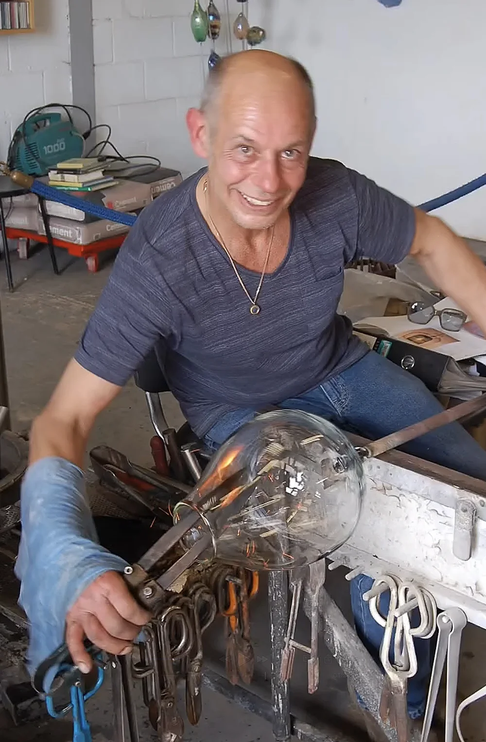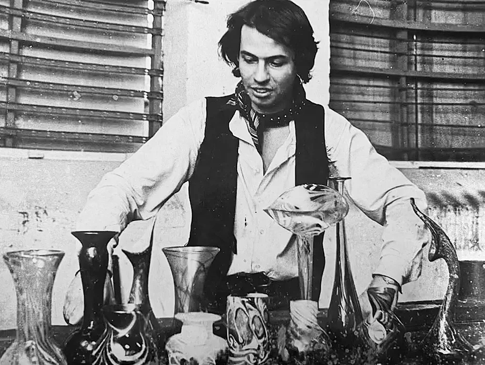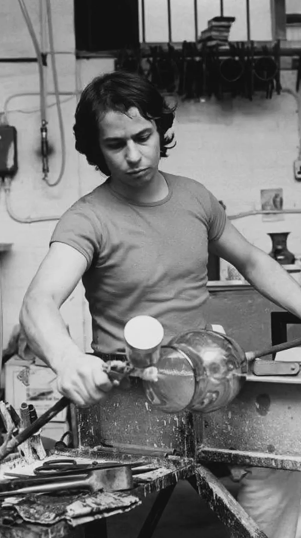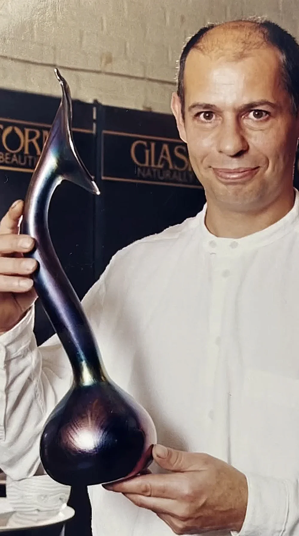 Ditchfield’s journey began in the 1960s in Blackpool, where, at just sixteen, he apprenticed at the Venetian Glass Company. Under the guidance of Italian maestro Franco Toffolo, he absorbed the traditional techniques of Venetian glassblowing, from the simplest forms to the most intricate designs. Eager to expand his horizons, he later travelled across Europe, working with established glass artists in Holland, Germany, and Switzerland. It was during these years that he encountered the shimmering iridescence of Louis Comfort Tiffany’s Art Nouveau glass, a discovery that would shape his own distinctive style.