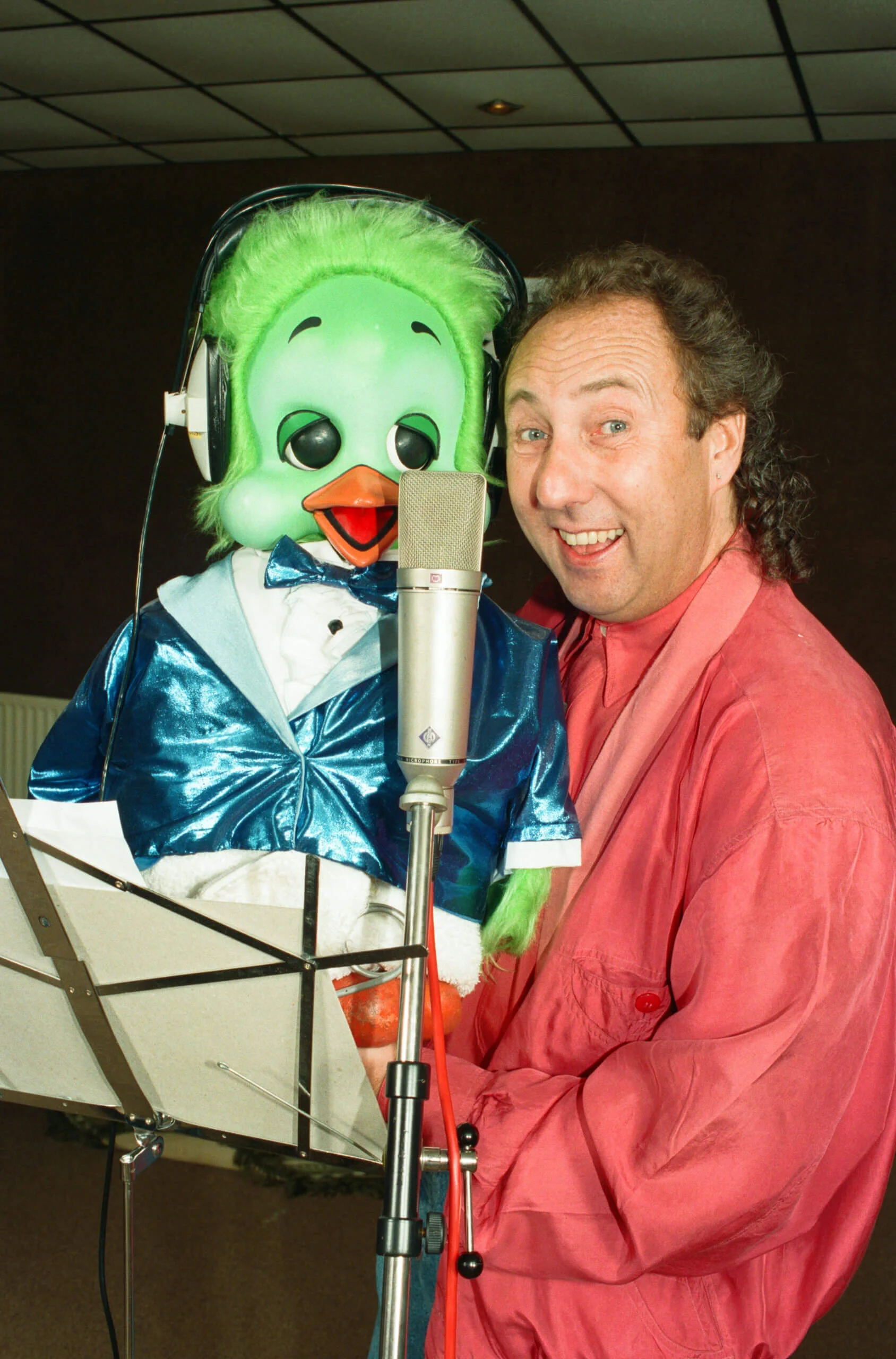 Photo inset: Keith Harris and Orville recording the Roy Castle record. 31st August 1994.