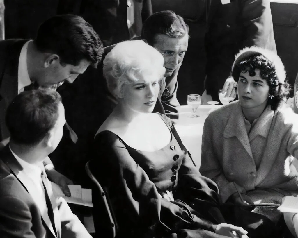As part of her promotional tour, Novak also visited Blackpool Tower, where she was photographed with an audience both up close and at a distance. These images, captured during her time in Blackpool, offer a glimpse of the Hollywood glamour she brought to the town.