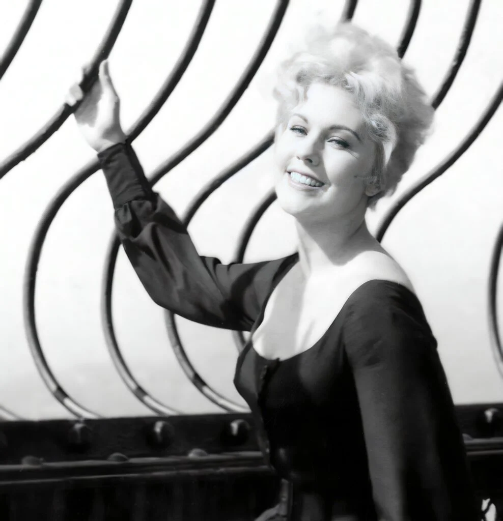 In 1956, Hollywood star Kim Novak visited Blackpool during her time in England for the premiere of The Eddy Duchin Story. The premiere took place at the Blackpool Opera House, where Novak posed for several publicity photos for Columbia Pictures, adding to her rising fame.