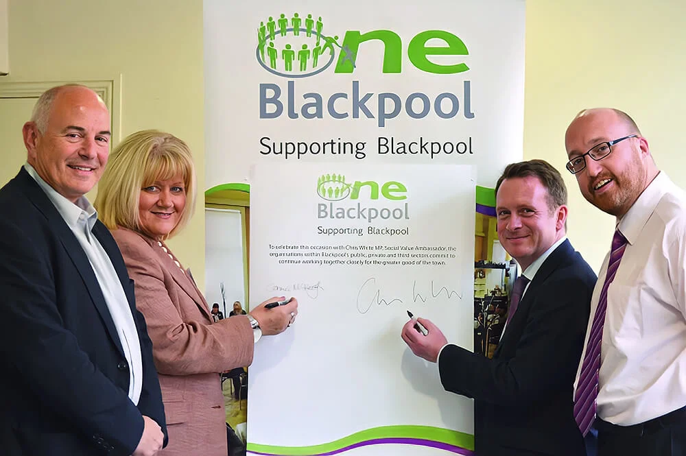 Public and Private Sectors.” That was the message from Chris White MP, the man who pioneered the Social Value Act through Parliament. Chris White, who is the government’s social value ambassador, accepted an invitation from One Blackpool to address delegates from the local public and third sectors. In the grand surroundings of Blackpool’s iconic Tower, more than 50 representatives from the sectors gathered to hear the MP explain why he championed the cause. He was also able to hear first-hand examples of how the system works in practice in Blackpool from the council’s deputy chief executive, Carmel McKeogh, Vicky Wells, programme director at One Blackpool, said: “We appreciate Chris giving up his time to explain this extremely important piece of new legislation. We are pleased that local commissioners will now also be looking at the social value of the organisations from which they commission services and not just the cost.”