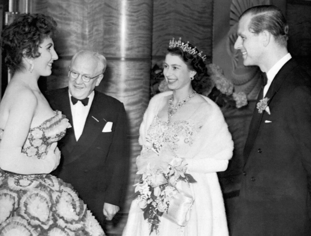 In the photo: The Queen and the Duke of Edinburgh meet singer Alma Cogan and show presenter Jack Hylton after the Royal Variety Performance at the Opera House in 14 April 1955.