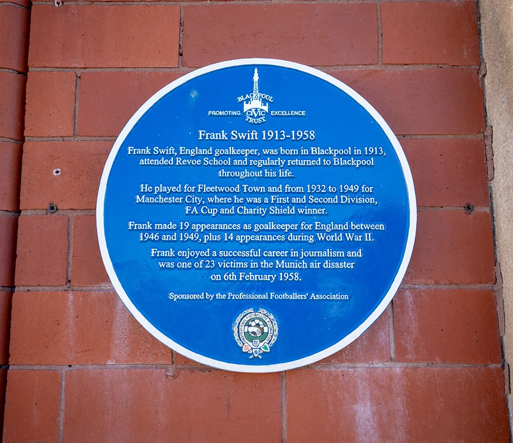 The plaque above also hangs near the library’s entrance and commemorates footballing giant Frank Swift, who used to go to Revoe School when he was growing up in Blackpool.