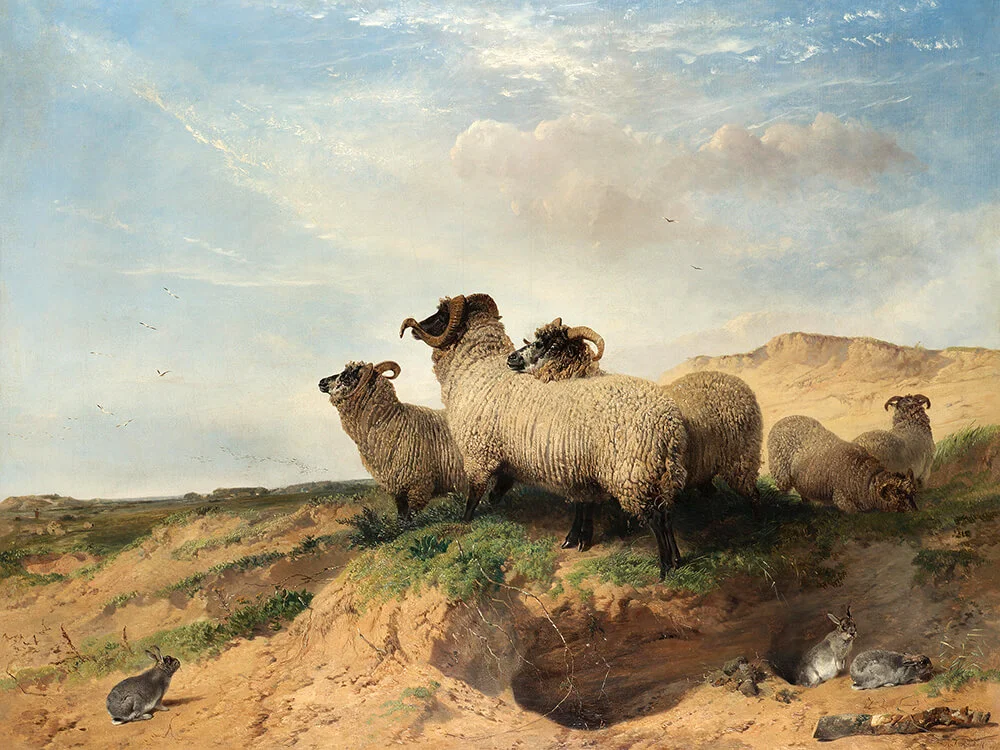 Richard Ansdell RA (11 May 1815 – 20 April 1885) was a distinguished British painter renowned for his depictions of animals, rural life, and dramatic genre scenes. Born in Liverpool, then part of Lancashire, he was the son of Thomas Griffiths Ansdell, a freeman who worked at the port, and Anne Jackson. After his father’s death, he attended the Liverpool Blue Coat School for orphans, where his artistic promise became clear. Following his studies, Ansdell apprenticed with a portrait painter in Chatham Street, Liverpool, before working as a sign painter in the Netherlands—an experience that honed his observational skills and interest in everyday detail.