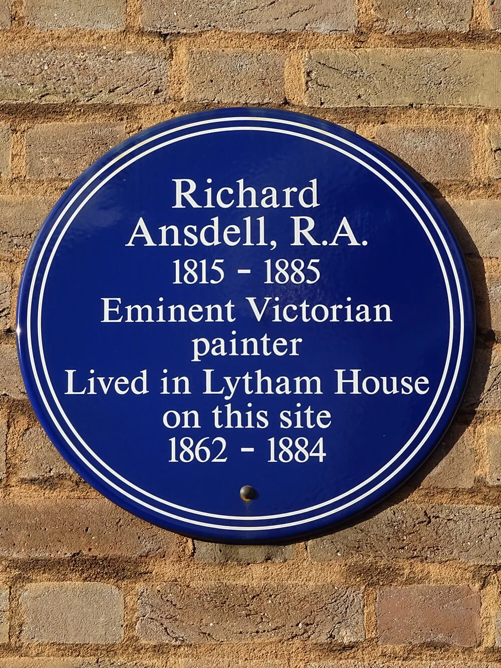 Richard Ansdell, R.A. 1815-1885 Lived in Lytham House, London 1862-1884. Photo by Spudgun67 CC BY-SA 4.0