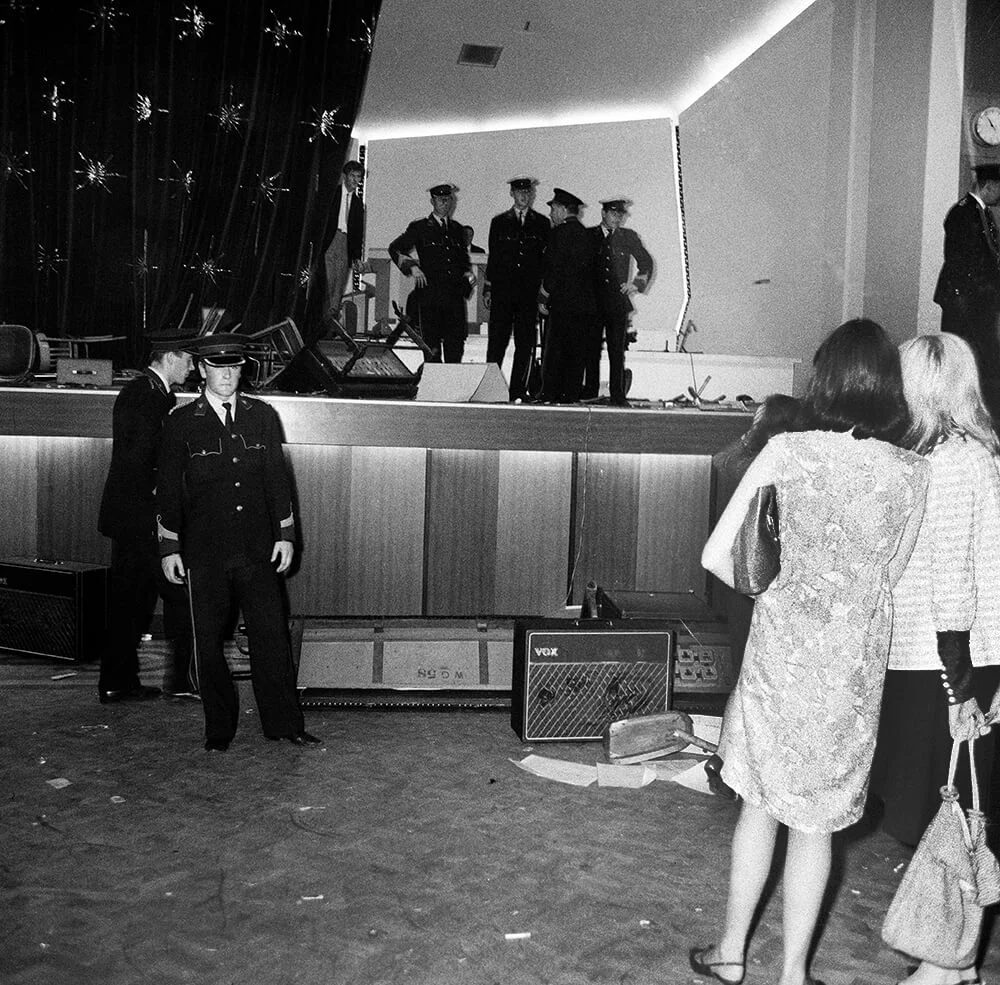 Scenes at the Winter Gardens in Blackpool after riots broke out during the Rolling Stones concert on 24 July 1964.