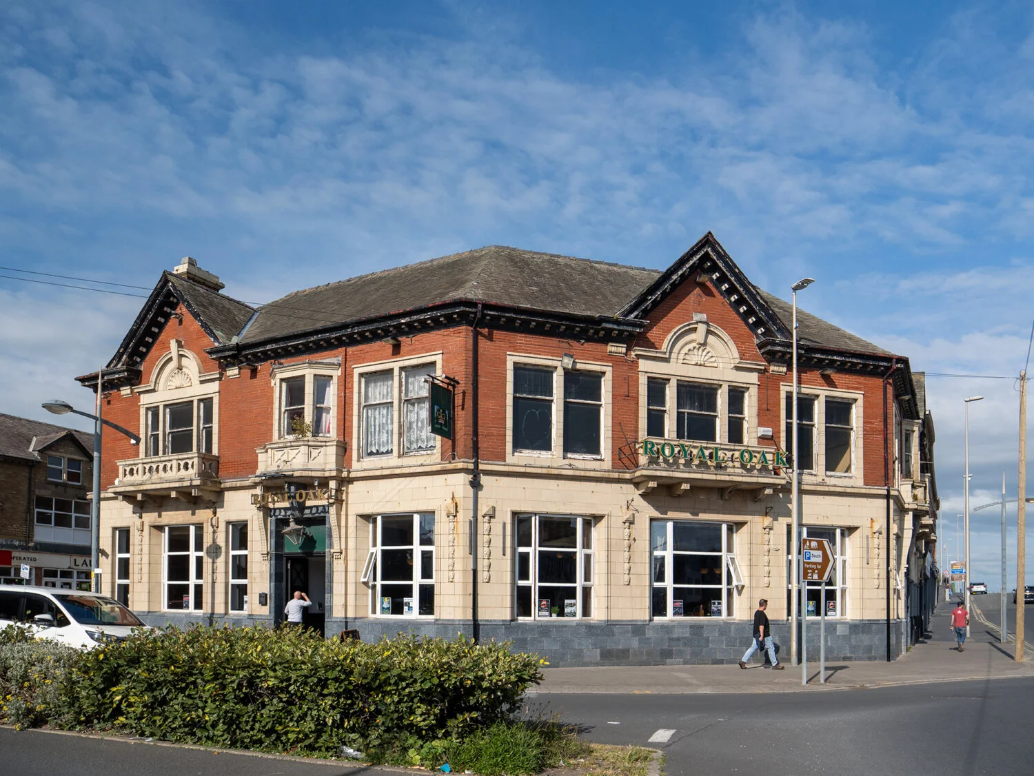 The Royal Oak pub in Blackpool has a history dating back to the late 1890s. It was acquired by the C&S Brewery in 1893, extensively refurbished, and renamed the Royal Oak. The rebuilding included salvaged brick from Whinney Heys Hall and a glazed terracotta facade. The pub reopened on July 12, 1930, with a fireplace believed to be the work of Robert Thompson, featuring hidden carved mice and celebrating its earlier life dating back to 1651. The Royal Oak is located on Waterloo Road, a street known for its architectural mix of old and new. It stands opposite the Civic...