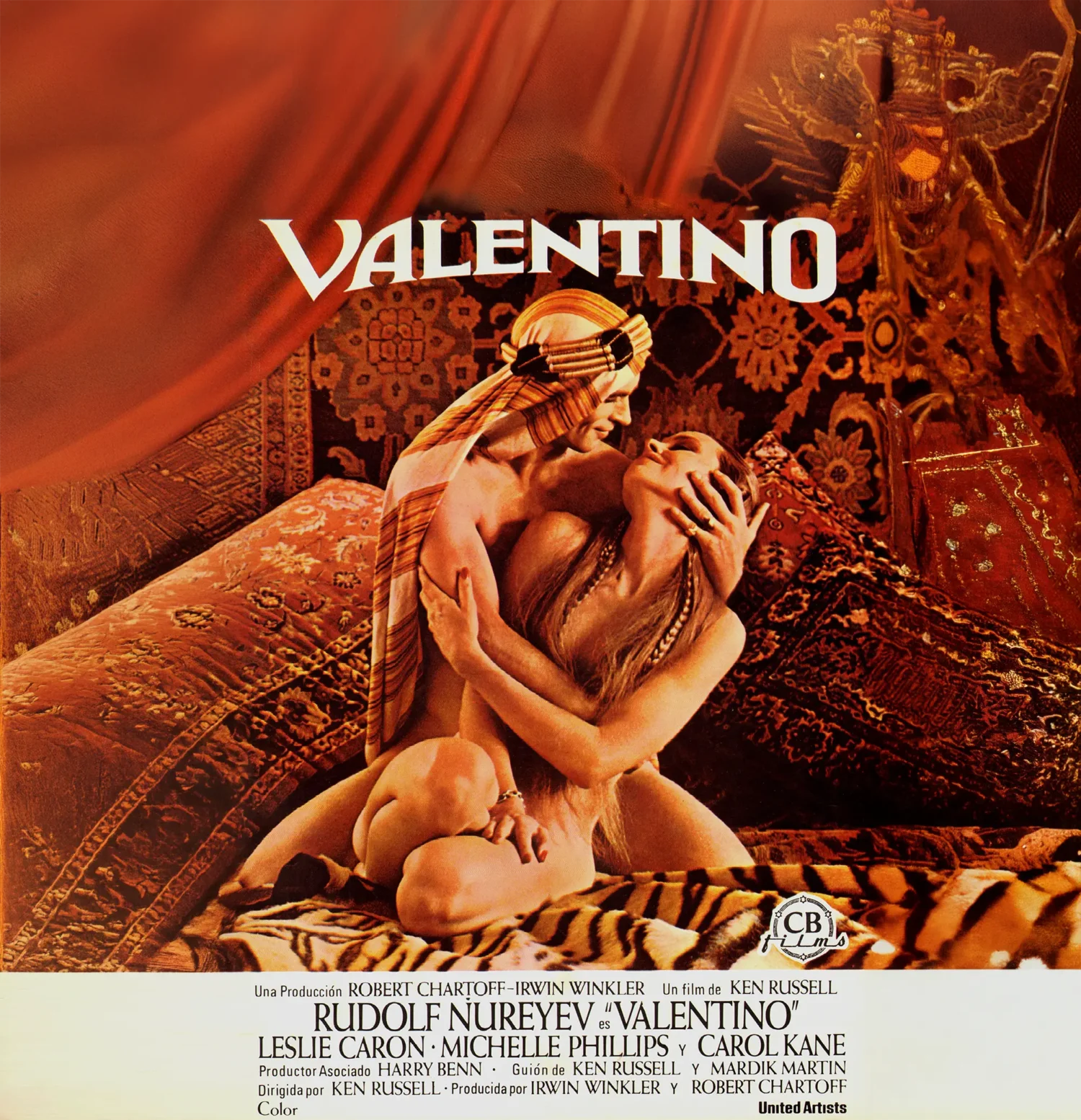 Valentino was a 1977 American biographical drama directed by Ken Russell, co-written with Mardik Martin, and starring Rudolf Nureyev, Leslie Caron, Michelle Phillips, and Carol Kane. Loosely inspired by the life of silent film star Rudolph Valentino, it drew on the book Valentino, an Intimate Exposé of the Sheik by Chaw Mank and Brad Steiger. Among its highlights was a sequence filmed at the Blackpool Tower Circus. The project began in 1975 when producers Irwin Winkler and Robert Chartoff set it in motion, eventually turning to Russell to direct. The narrative was told through flashbacks following Valentino’s death in 1926,...