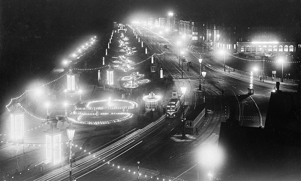 The Blackpool Illuminations, often called the “Switch-On” lights, started back in 1879 when Blackpool’s council celebrated the first use of electric lights along the Promenade. They kicked things off by spending £5,000 on a trial of electric street lighting. They set up eight arc lamps on 60-foot poles along the seafront. At the time, people were still using candles for light, so this new setup amazed everyone and got nicknamed “artificial sunshine.” These electric lights drew curious visitors to Blackpool, starting an annual tradition that continues to this day. Although the early lamps had a quirky issue—they would often go out when the tide came in because water would seep into the cast iron wiring pipes. The Illuminations got a major update in 1925 after an 11-year pause due to World War I.