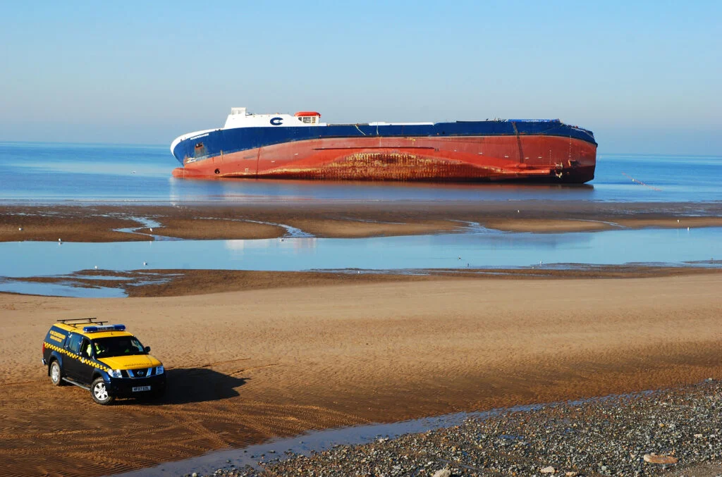 Emergency services, including the RNLI and helicopters, quickly responded. They later described the weather as some of the worst they had ever faced. Amazingly, by 4 a.m., all passengers and crew were safely rescued from the ship, and no lives were lost despite the dangerous conditions. The ferry remained stuck on the beach for several months. At low tide, the Riverdance was fully out of the water, surrounded by sand. Due to its size, it was easily visible in the water when the tide came back in, lying at a slight angle with all the trailers and cargo on its upper deck clearly visible from the shore.
