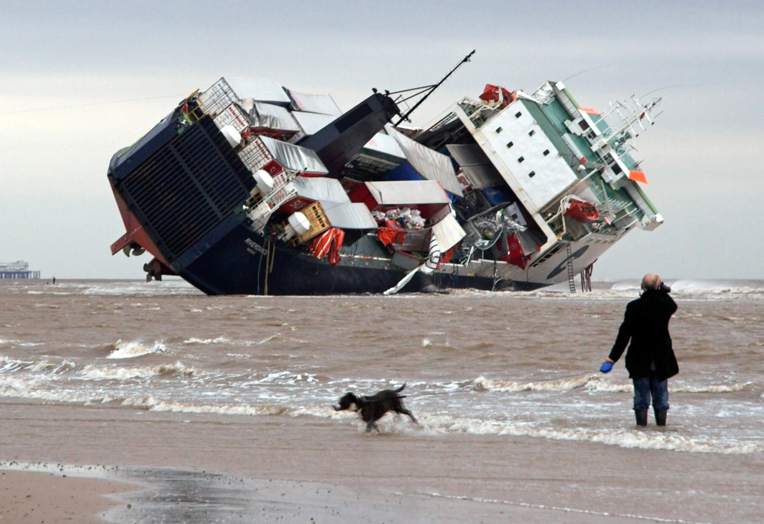 On 31 January 2008, a container ferry got stuck on the beach near Anchorsholme, close to Cleveleys. By the morning of 1 February, people in Cleveleys and Anchorsholme woke up to find the Riverdance shipwreck on their shores. The Riverdance ferry was traveling from Ireland to Heysham when a huge wave hit it during a strong storm with winds up to 80 mph. This caused the ferry to tilt and eventually run aground at Anchorsholme, where northern Cleveleys begins.