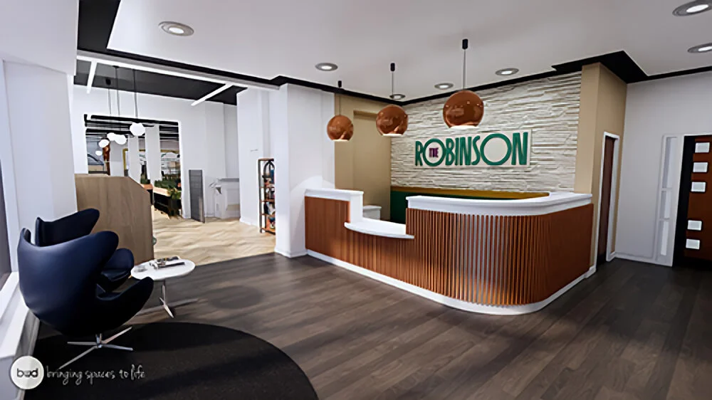 The refurbishment transforms this landmark into flexible office space, co-working areas and meeting rooms designed for modern business use. The Robinson will offer more than 40 private offices of varying sizes, six meeting rooms, and co-working desks for freelancers and small companies. Facilities include high-speed fibre broadband, kitchens, showers, a secure cycle store and fully equipped meeting spaces. The design encourages collaboration, with the aim of creating a supportive community for entrepreneurs and growth-minded organisations.