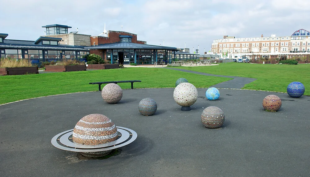 Model Orrery in the grounds of Solaris Centre, Blackpool and designed by artist Caroline Murphy. © Alamy